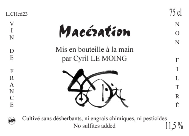 <Cyril Le Moingのコメント> ボーリュー・シュール・レイヨンの畑の完熟したシュナン・ブランは、凝縮され旨みが詰まっており、そこへマリーニェの区画にあるFranc de Pied(自根のシャルドネ)を加えました。トマトベースのタジンなど、野菜の旨味とスパイスの効いた料理と合わせると果実味が一層感じられます。ボトルには多くの沈殿物が含まれているため、気になる方は澱を沈める又はデキャンティングをおすすめします。 <香りと味わい> ウイスキー、ナッツの風味。ドライレーズンが混じり、かなり熟したシュナン・ブランに特有な酸化熟成のニュアンス <ラベルの名前の由来> 本来、赤ぶどうで行う醸造方法のマセラシオン。白ぶどうを使ってその醸造方法を行うことによりできるワインは、オレンジワインと呼ばれ、その製法にちなんで名付けました。シュナン・ブランの皮や種を果汁と一緒に漬け込み、充分にマセレーション(醸)して渋味や色味成分を抽出。その後、発酵・醸造しています。 日本人が手伝いをして一緒に造った年には、日本古来の一文字ずつが神様を表し神事にも使われた不思議な力を持つともいわれる、ホツマ文字で「つながり」を入れています。